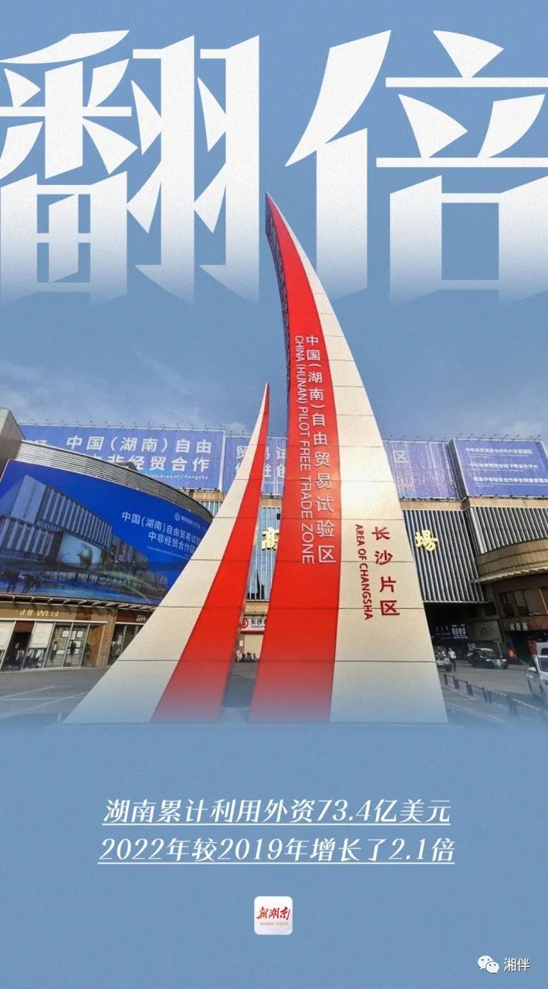 湖南累计利用外资73.4亿美元,2022年较2019年增长了2.1倍;