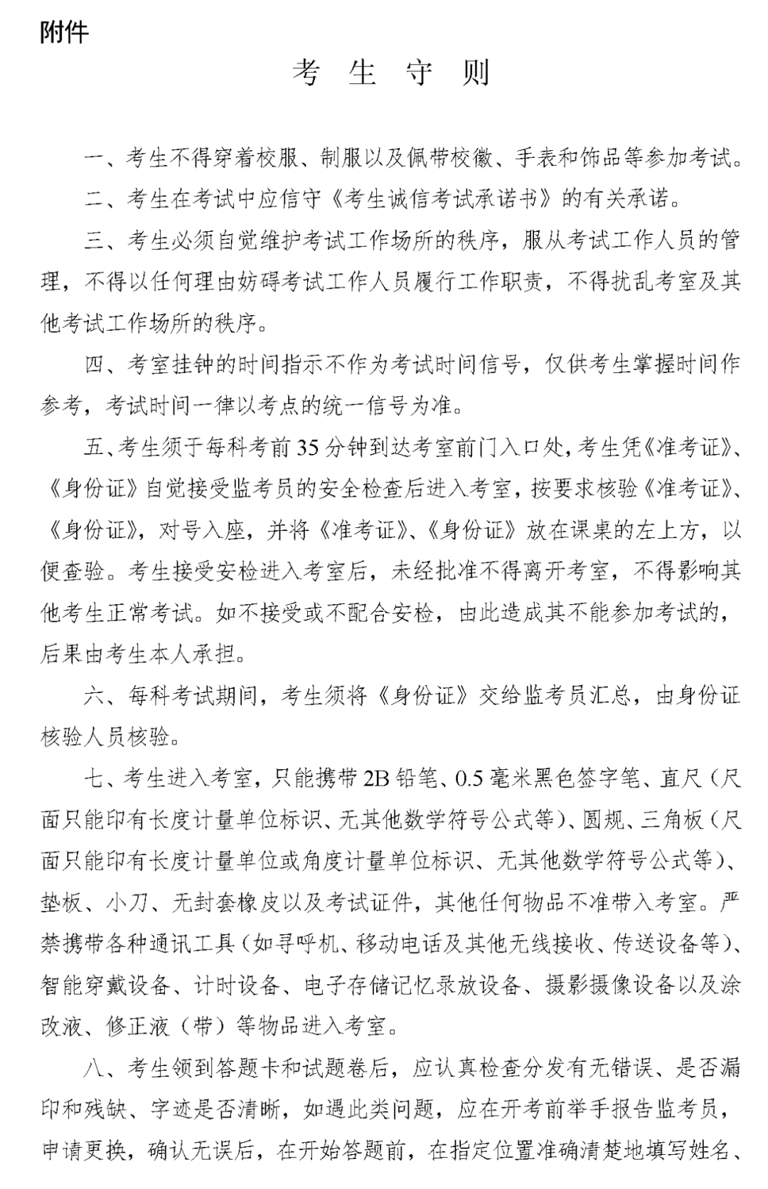 附件:考生守则