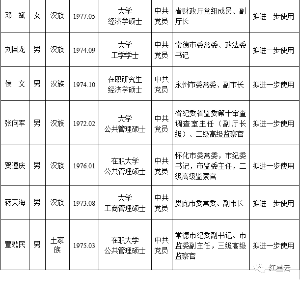 为了加强对干部选拔工作的监督,提高识别和任用干部的准确程度,现对省委常委会会议研究决定的下列拟任人选进行任前公示: